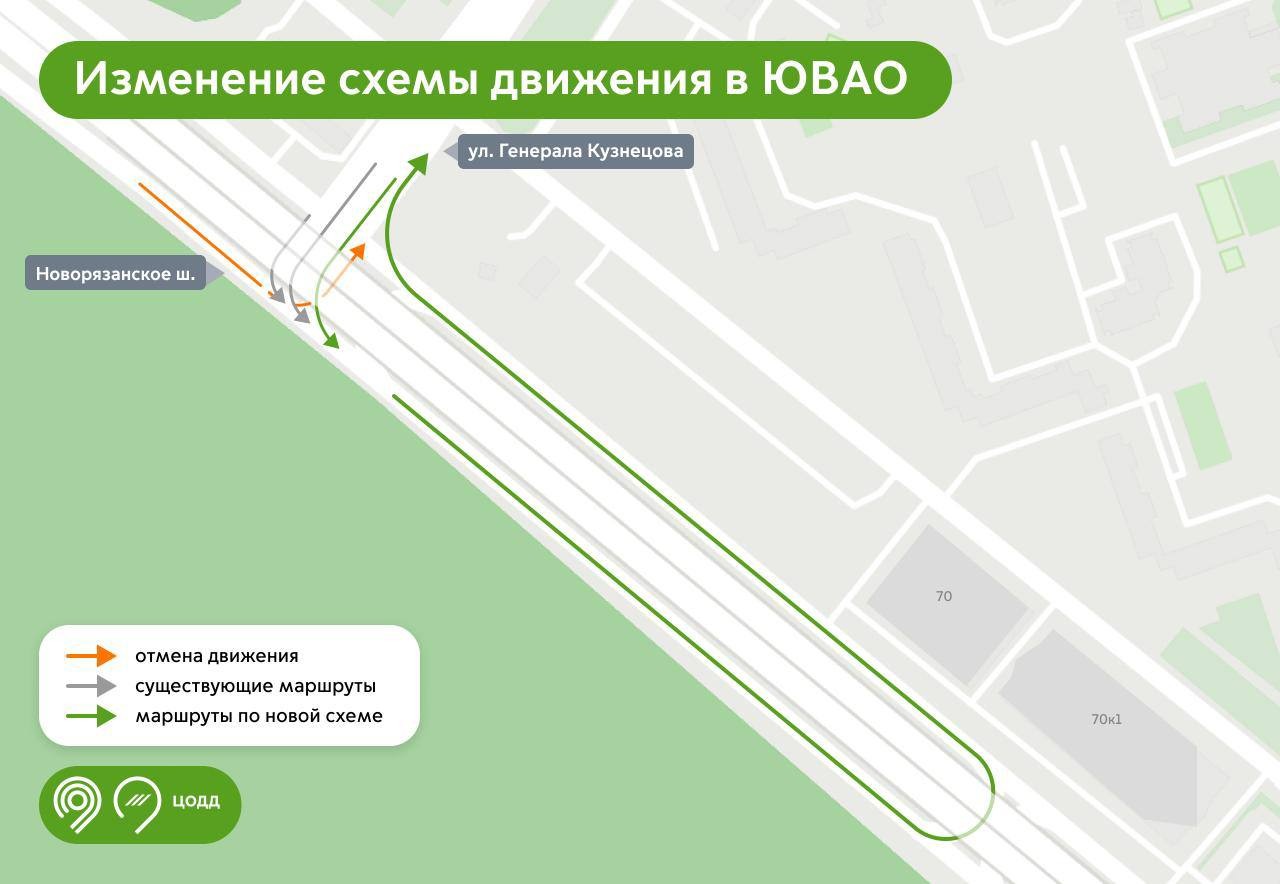 С 5 октября изменилась схема движения на пересечении Новорязанского шоссе с улицей Генерала Кузнецова. Там часто возникали затруднения из-за плотного трафика. Нововведение должно ускорить проезд на сложном перекрёстке, сообщают столичный Департамент транспорта и ЦОДД.